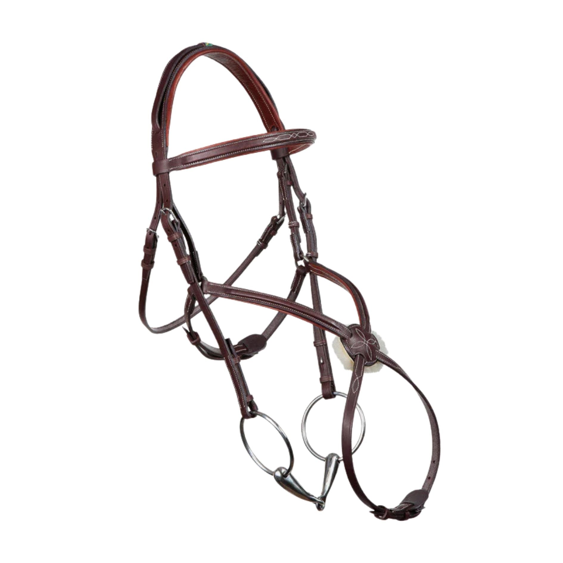 The calfskin-lined figure-8 noseband is one of the most elegant designs by Devoucoux, displaying a thin ergonomic headpiece, hook stud cheekstraps and a finely stitched curved noseband. This piece can be adjusted on both jaw and cheek.