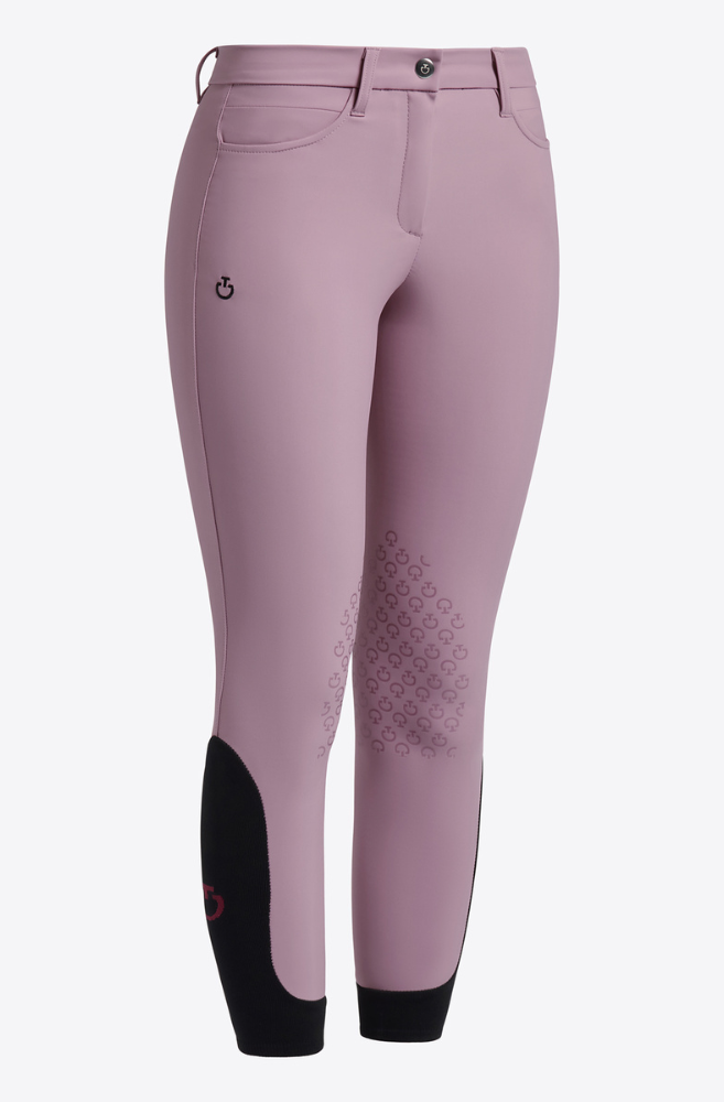 The bi-stretch technical fabric used to make the Cavalleria Toscana riding breeches for girls guarantees maximum comfort by perfectly following the movements of the body during the ride. The fabric is also breathable and antibacterial for the best comfort during training. The transparent grip at the knee allows stability on the crotch, while the elastic socks decorated with a contrasting logo offer a comfortable fit under the boots. The trousers feature two side pockets and a zip and button closure.