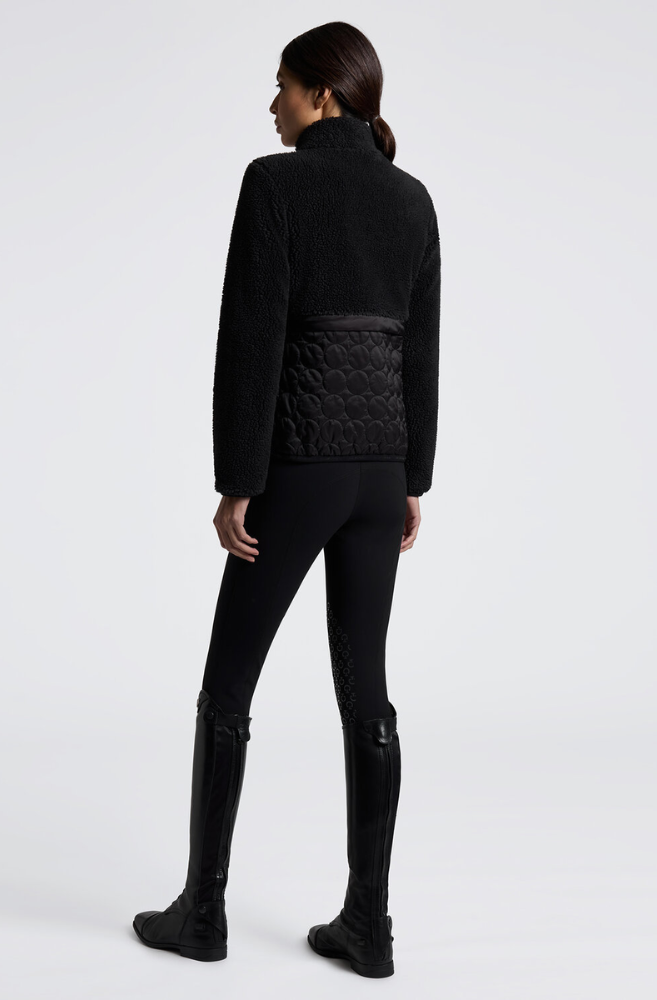 The Cavalleria Toscana Women's Fleece and Nylon Zip Jacket is designed to offer thermal protection and maximum comfort during colder days. The fleece body provides warmth and softness, while the quilted nylon inserts enhance durability and add a technical edge to the design. The front and pocket zippers are water-repellent, ensuring functionality even in challenging weather conditions. An elasticated bottom hem ensures a snug fit during movement, while the Cavalleria Toscana logo applied on the sleeve adds a distinctive touch. A jacket ideal for equestrians looking for style, practicality, and high-level performance in a single garment.